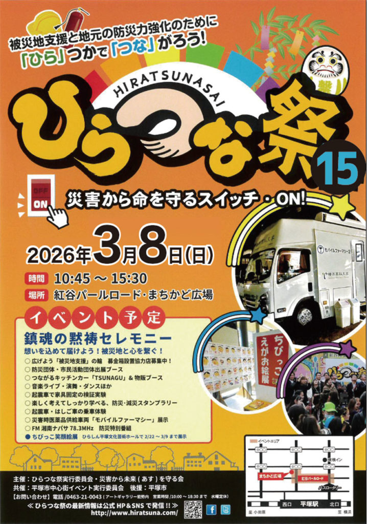 「災害から命を守るスイッチON!」をテーマに、楽しみながら防災に触れられる祭り。防災に関するブースをはじめ、音楽ステージやキッズダンスも行なわれる。地域で防災を考える1日に。