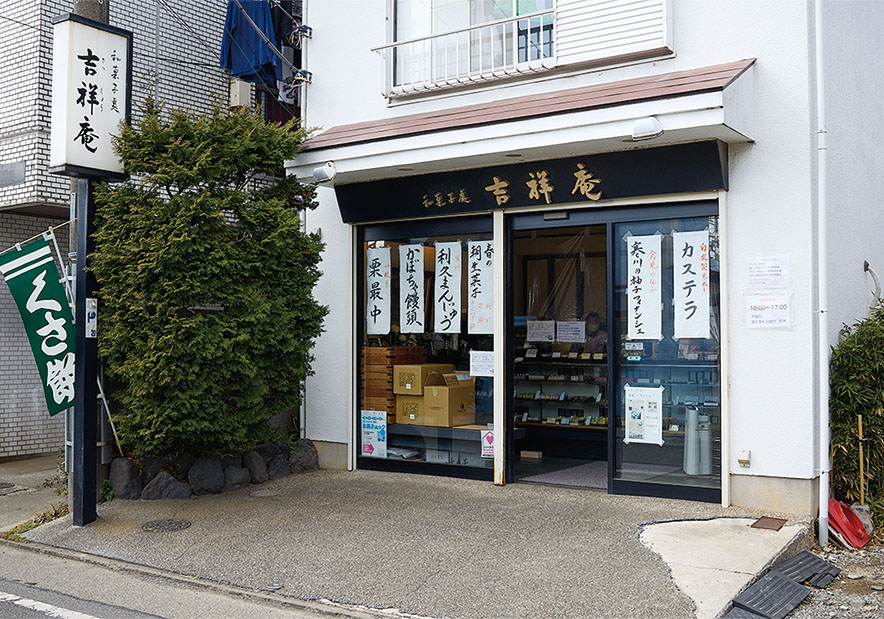JR相模線・倉見駅から徒歩1分のところに店を構える「和菓子處 吉祥庵」。