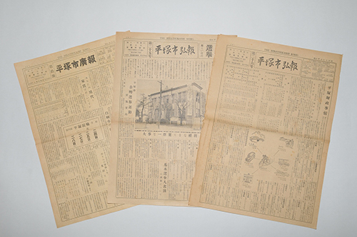 平塚市の広報は昭和24年に「平塚市弘報」の名で創刊された。以来65年間にわたり市行政や市内の出来事などを市民に広く紹介してきた。今回、広報10号と25号は市内土屋の女性から、26号は市内諏訪町の男性から市秘書広報課宛に電話があり、発見に至った。10号はB4判2ページ1色刷り、25・26号はB4判4ページ1色刷りで保存状態も良いという。