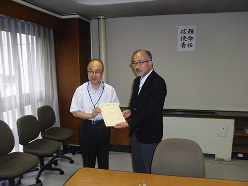 平塚市民病院(金井歳雄病院長)が神奈川県知事により「神奈川県がん診療連携指定病院」に指定されたとして18日、県庁分庁舎で指定書の交付式が行われた。