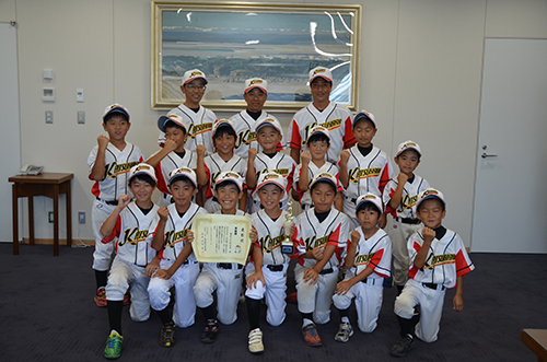ティーボール全国大会に出場勝原少年野球部が表敬訪問