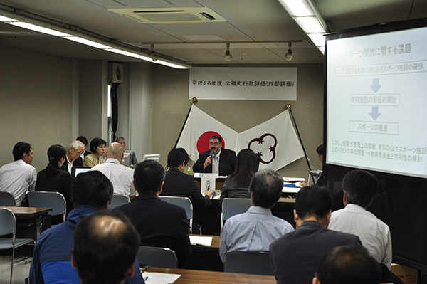 大磯町は4日、外部の学識経験者など3人によって構成される大磯町行政評価委員会による外部評価を実施した。一般町民の傍聴も可能で延べ40人ほどが訪れ、真剣な眼差しを向けていた。