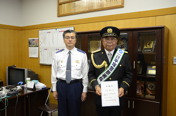 安全安心なまちづくりを呼びかけ 防犯協会会長が1日警察署長に