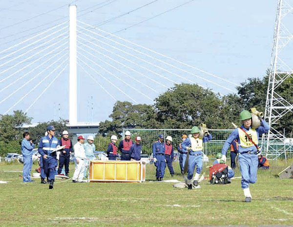平塚市内で危険物を取り扱う施設の自衛消防団員が日頃の訓練の成果を競う「消火競技大会」が24日、相模川河川敷の加和楽会グランドで行われた。同大会は消防用機械器具の取り扱い技術向上や、防災意識の高揚、自主防災体制確立の推進を目的に開催されているもので、今回が47回目。