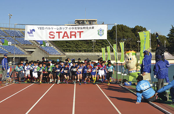 湘南ベルマーレホームタウン内の小学4・5・6年生がチーム制で競う、平塚商工会議所青年部(YEG、今村佳広会長)が主催する毎冬恒例の駅伝大会「YEGベルマーレカップ小学生駅伝競走大会」が6日、平塚市総合公園内で開催された。会場には落合克宏平塚市長を始め金子 誠教育長、森 正明県議、赤井和憲県議らも応援に駆けつけ、児童が懸命に走る姿を見守った。