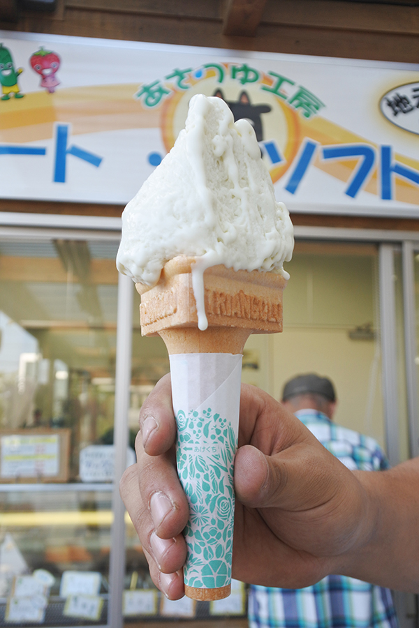 まだ暑い日が続く中ジェラートでも楽しめるのが、JA湘南あさつゆ広場のあさつゆ工房。優しい甘みとほんのりした芋の香りを感じられるが、特に9月上旬から10月初め頃には生の芋をここで加工して原料にするので、鮮度の良さを味わえる。あさつゆ広場では今後シフォンケーキ(※)も登場するなど、甘いもの好きの人にはうれしい限りである。