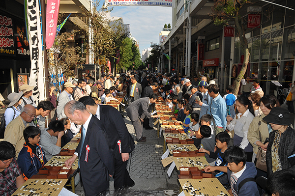現在では囲碁まつりといえば「囲碁のまちひらつか」というように「湘南ひらつか囲碁まつり」は囲碁ファンの注目を集め、性別や年齢、地域を越えた全国的に有名なイベントとなっている。碁石と碁盤が紅谷パールロードの端から端までズラリと並んだ様はまさに圧巻の一言。さわやかな秋空のもと、プロ棋士との対局は緊張感のなかにも和やかさが漂い、独特の雰囲気がかもし出される。