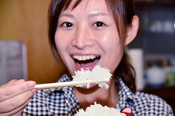 さらに同会の協力のもと、試食会も行わせてもらった。新米ということで炊飯器の目安の水分量より、気持ち水を少なめにセット。それでも炊き上がったはるみはかなりの粘り気を持っていた。実際の食味も前評判通りで、甘みが強く、米の旨味が強く感じられた。といっても変な甘さではなく、口の中に残る余韻も楽しめる。今回は炊きたてをいただいたが、これだけしっかりした味わいであれば冷めても味が落ちにくいというのはその通りなのだろう。取材を通して多くの人にどういう食べ方が美味しいか尋ねてみたが「塩をちょっと振った程度のおにぎり」を勧める人が多かったのも頷ける。