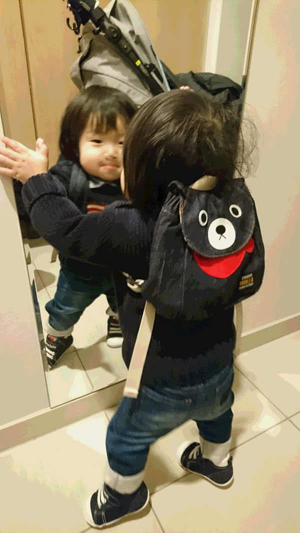 初めて買ってもらった靴とリュックなかなか似合うぞ!