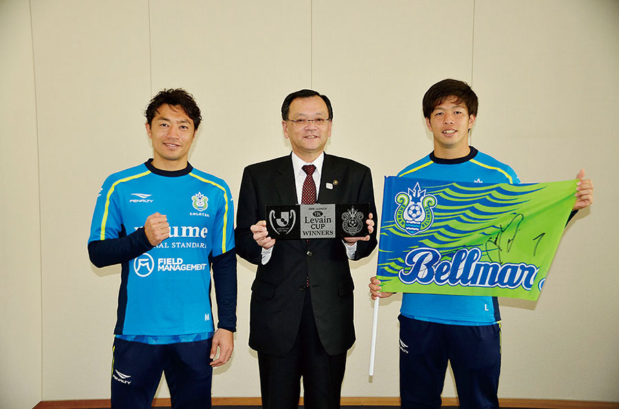 創立50周年でのルヴァンカップ優勝という結果に相好を崩した落合克宏市長に対し、梅崎選手は「タイトルは1つ大きな達成だがリーグは残留争いと課題も残った。チームとして成長できた1年だと思うので、その姿をより強固にし、高い順位を目指していく」と話した。坂選手は「残留争いではみなさんをハラハラさせてしまって……」とばつが悪そうに語るも「来季は上位争いでいい意味でドキドキできるシーズンにします」と力を込めた。
