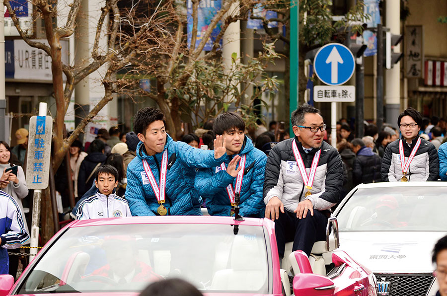 箱根駅伝優勝パレードを平塚で開催 1万人が東海大チームを祝福