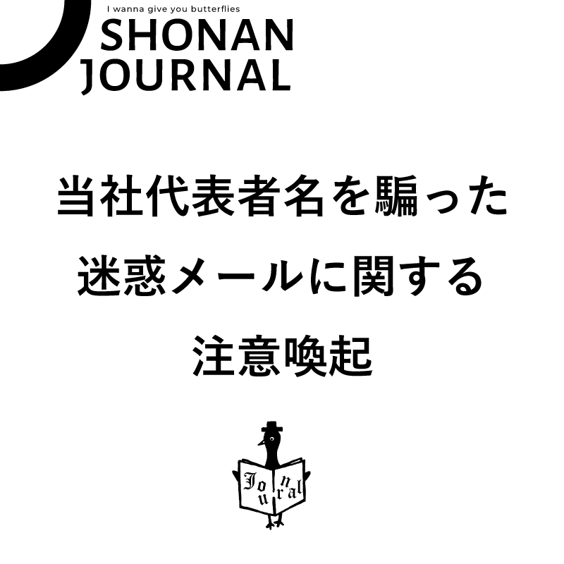 当社からの正式な案内や連絡は、公式ドメイン(@shonan-journal.com)を使用したメールを通じて行われます。不審な差出人や見覚えのない連絡は、より慎重にご判断ください。