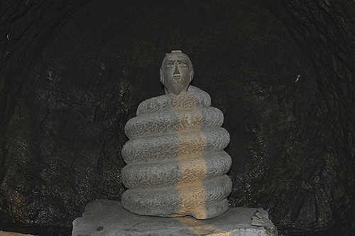 薄暗く湿った岩屋の中、煌々と燃え上がる炎が人々の業を、煩悩を焼き払う。僧たちは真言を唱え、息災・降伏を祈る。陽炎の先には平塚で唯一の石仏、人頭蛇身の宇賀神-。古くより「土屋の銭洗い弁天」として親しまれる妙圓寺で巳の日に行われている「弁天護摩」だ。巳年の今年、妙圓寺では12年に1度の「八臂弁財天御開帳」が行われる。
